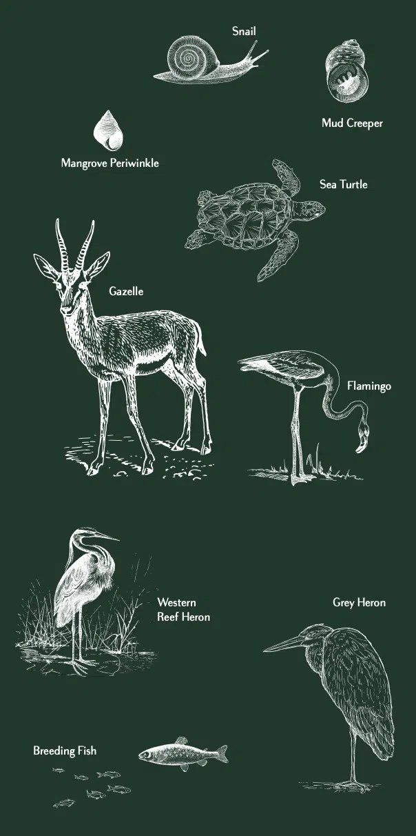 Jubail Island is a neighbourhood unlike any other located within a protected natural environment of stunning beauty, its surrounding ecosystem supports a diversity of wildlife. Its unique intertidal marine setting provides a welcome habitat for a diversity of wildlife.